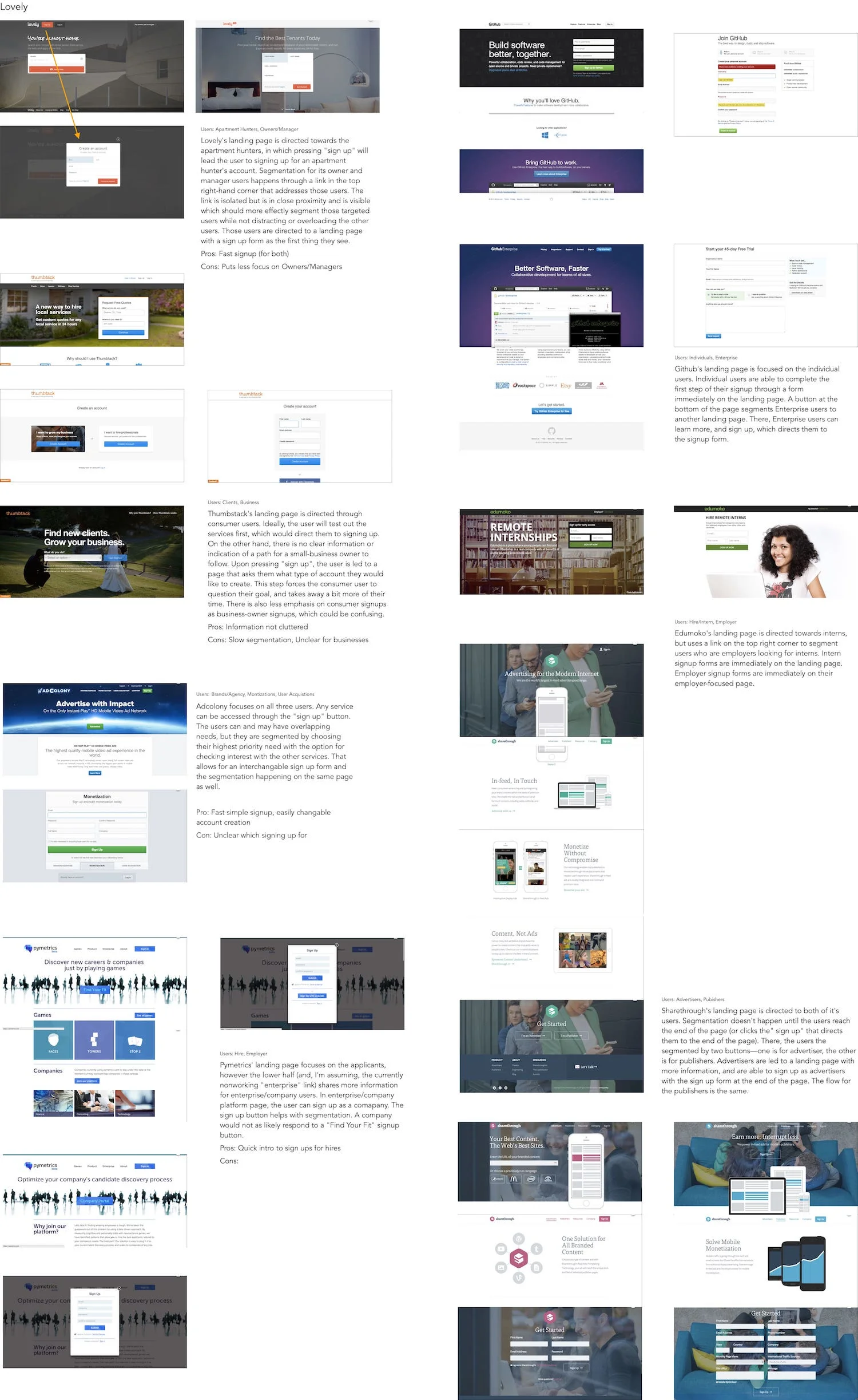 Findings: Segmentation usually happens before sign-ups rather than during the sign-up or on-boarding process. Usually this is done by having seperate landing pages and promotional content for each user segment and/or seperate call-to-actions.